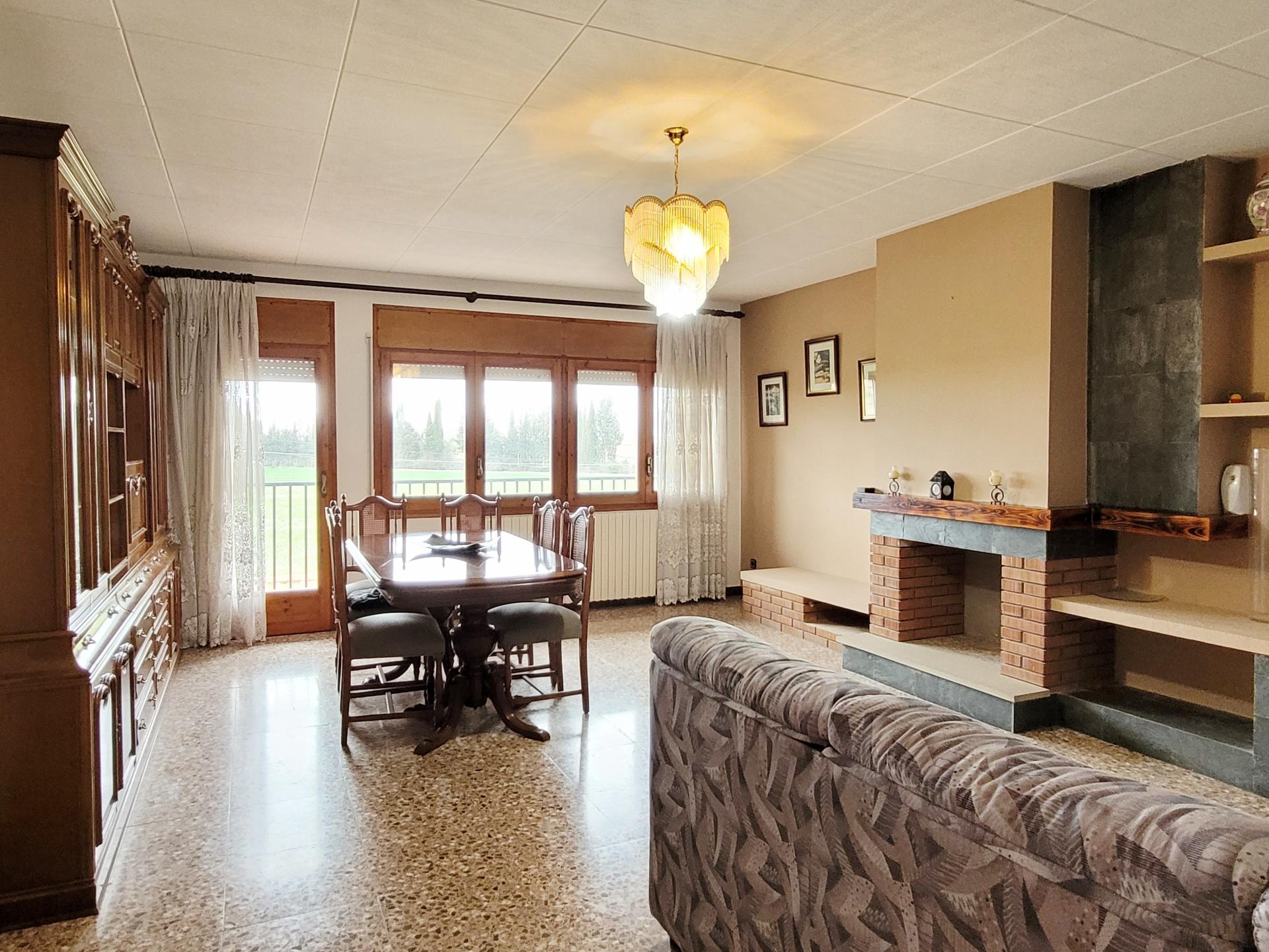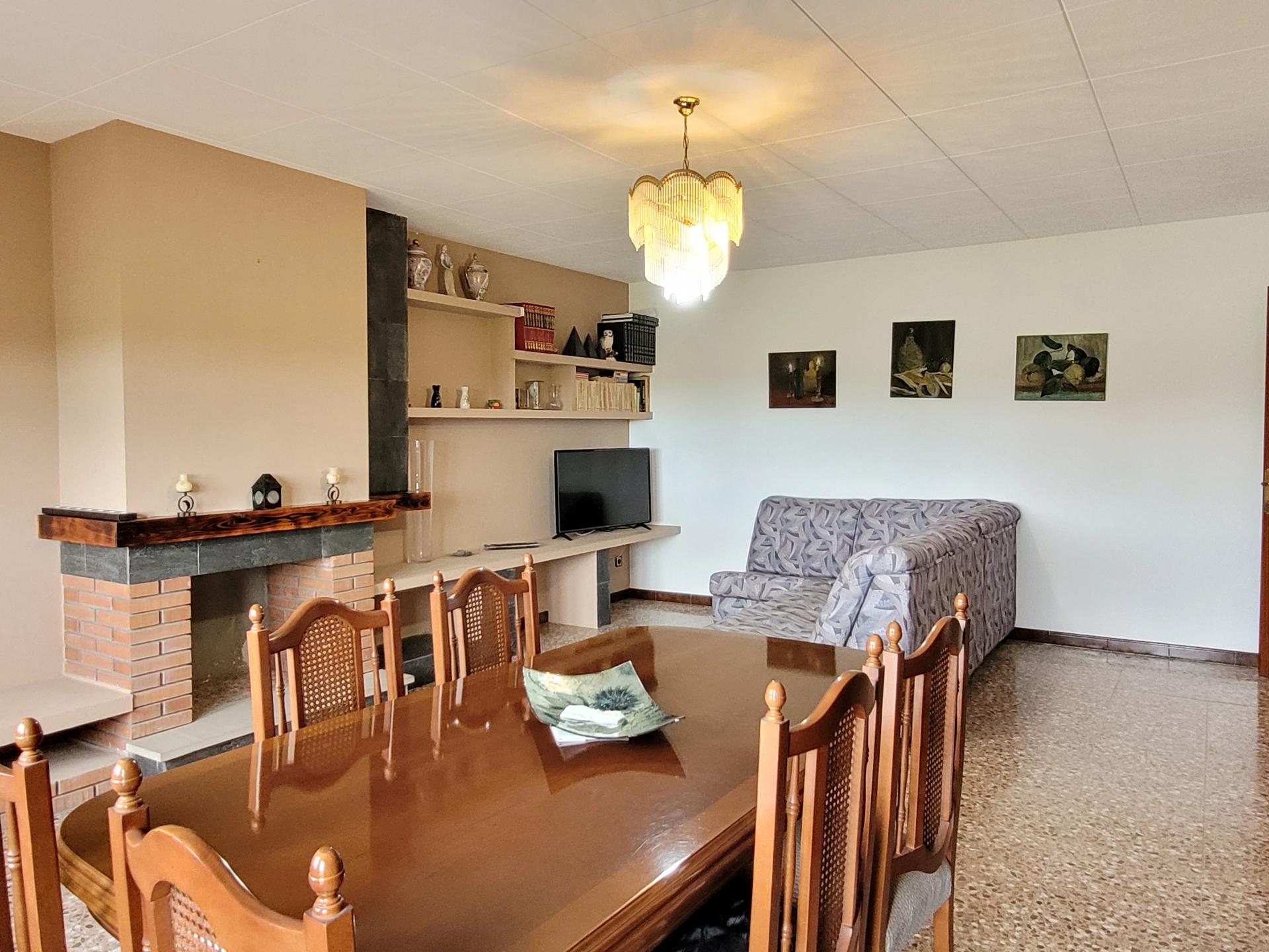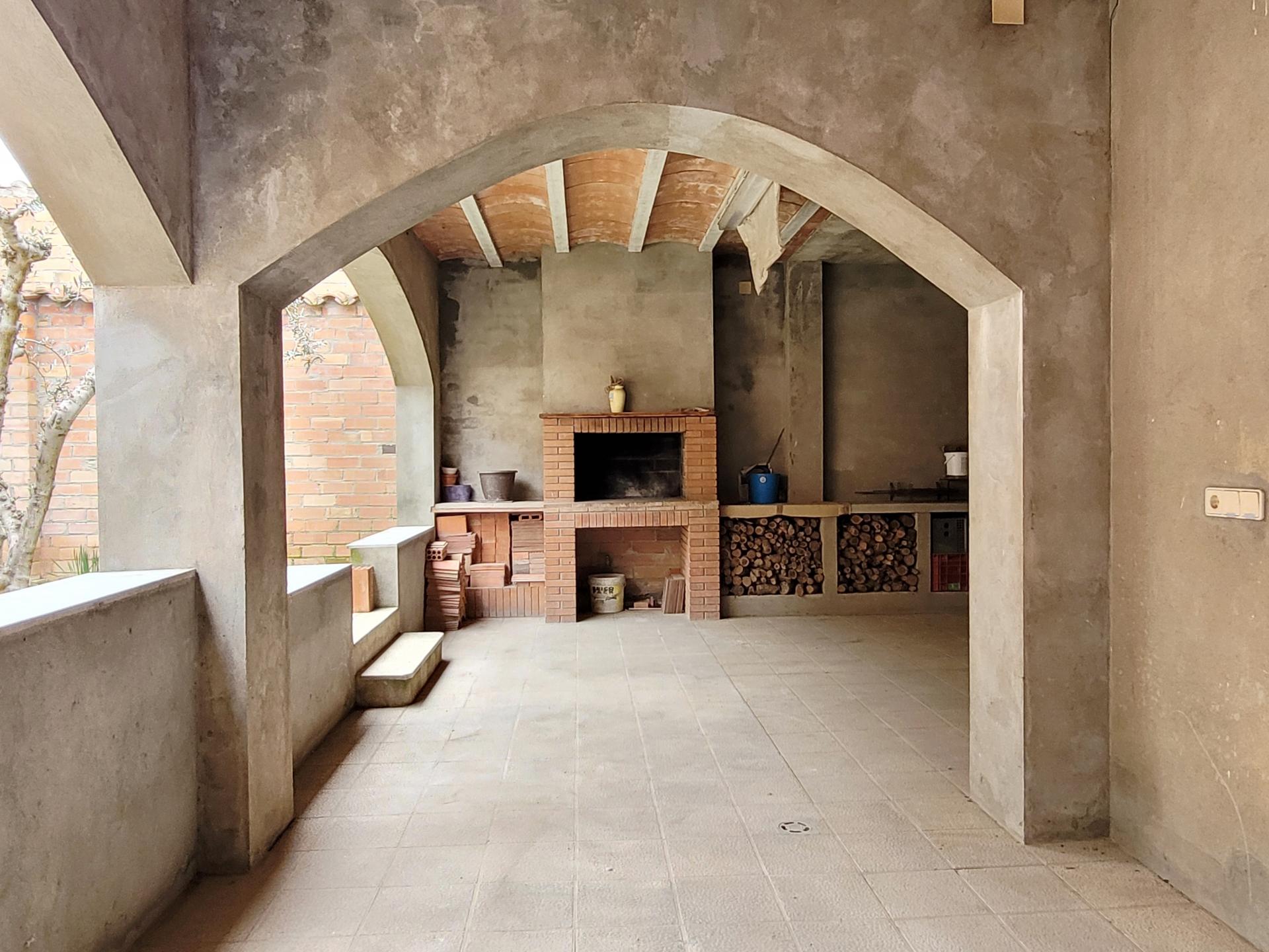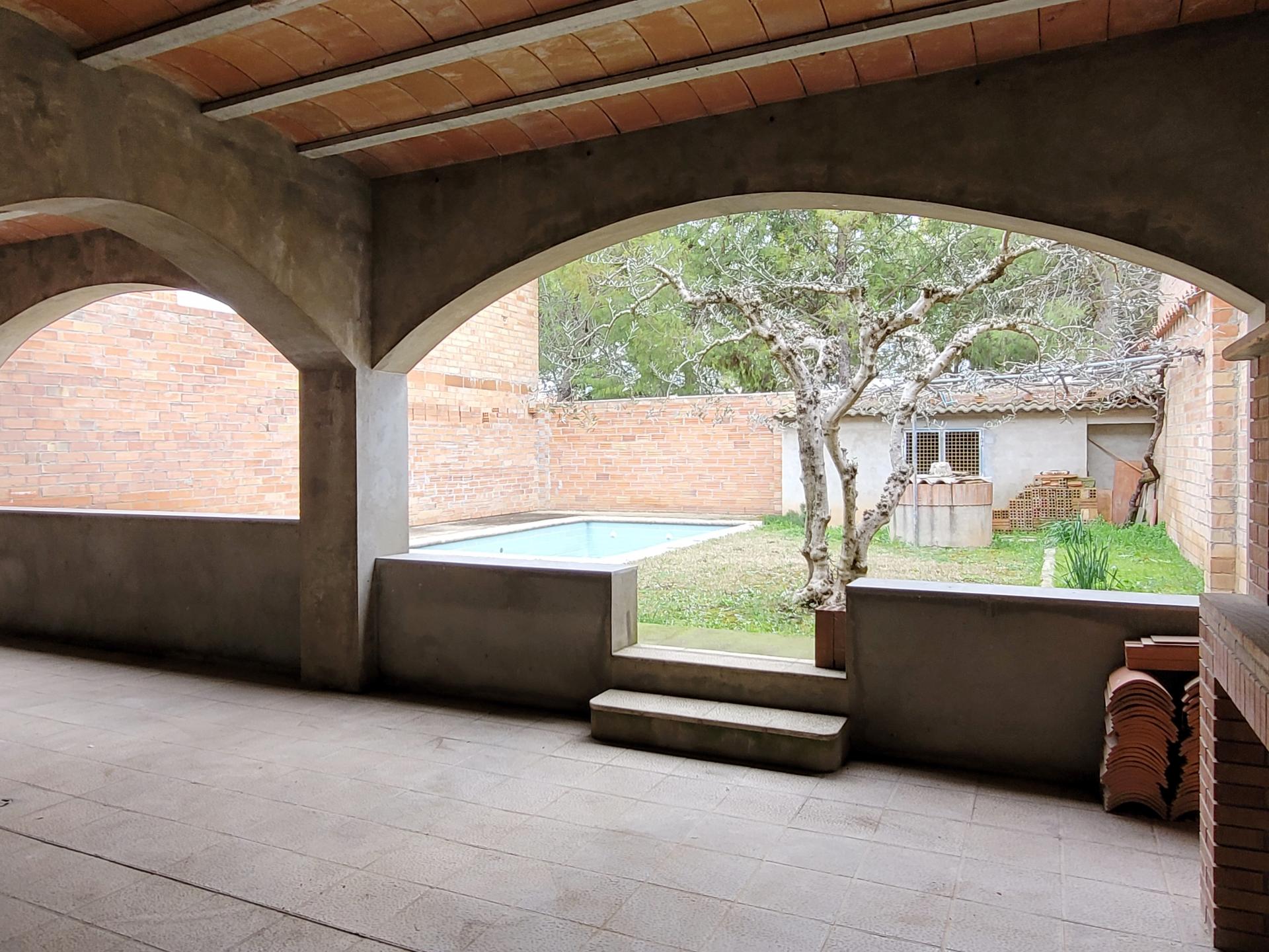 La vivienda dispone de un patio con porche y chimenea, con acceso directo a la piscina, ideal para colocar una mesa y disfrutar del aire libre en compañía de familiares y amigos.